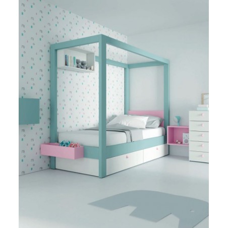Cama con dosel Canopy con amplios cajones para organizar cojines, ropa, nórdicos, etc. La colección permite jugar con los diferentes colores para crear dormitorios únicos y muy personales.